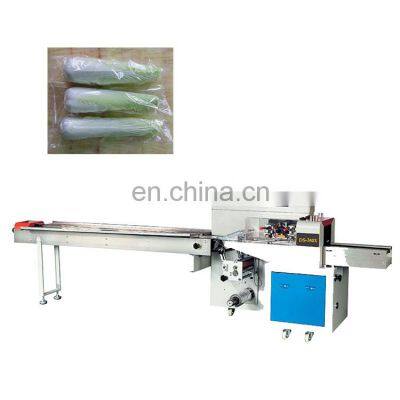 Machine IntroductionPackaging ApplicationAutomatic flow packing machine is a widely used packing machine. Suitable for all kinds of product packaging. Including medicalsupplies, vegetables and meat, baked bread, snacks and candy, daily necessities, hardware accessories, etc.Packing EffectThe effect after packaging is back-seal bag. According to demand, other devices can be customized or upgraded to meet other models. For example, pillow bag with hole, bag with label, gusset bag, etc.Machine Structure and ParametersMachine Characteristics1. Double frequency conversion control, the bag length canbe set and cut, no need to adjust the air, one step in place, saving time and film.2. Man-machine interface, parameter setting is convenient and quick.3. Fault self-recognize function, fault display at a glance.4. High-sensitivity photoelectric eye color tracking, digital input sealing position, make sealing position more accurate.5. Temperature independent PID control, better suitable for various packaging materials.6. Positioning stop function, no sticky kuife, no waste film.7. The transmission system is simple, the work is more reliable, and maintenance is more convenient.8. All control is implemented by software, which is convenient for function adjustment and technical upgrade, and never lags behind.ModelDS-250XDS-350XDS-450XDS-600XDS-700XDS-800XFilm Width(mm)Max.250Max.350Max.450Max.600Max.700Max.800Bag Length(mm)45~33065~330120~450130~450120~600120~600Bag width(mm)30~11050~16060~21060~28050~33050~380Products Height(mm)Max.70Max.80Max.110Max.150Max.150Packing Speed(bag/min)40~23030~15030~15020~12030~150Machine Power220V / 380V, 50/60HZ,2.4KWMachine Size(L*W*H, mm)3920*670*13204020*720*14503900*900*14683990*1000*14684400*1100*14604400*1200*1460Machine Weight800KG900KG900KG1050KG1050KG1050KGDetails ImagesMachine WorkflowThis machine is easy to operate. Just set the parameters on the screen, and then you can start the machine. Put the product on the conveyor belt, the machine will automatically pull the film, the bag is formed, sealed, and finally the bag is cut.Multilingual touch screenThe machine supports various language customization, easy to operate.High sensitivity eye sensorThe eye sensor automatically senses the color code to ensure accurate and beautiful packaging effects.Replaceable bag formerWhen you want to change the bag width, you only need to change a different size bag fromer.Electronic control componentUse Panasonic PLC and frequency converter to ensure the stable operation of the machine.Related ProductsWhy Choose UsVR1. Professional and Strong TeamDession has a professional team that can provide customers with various packaging solutions. After fully understanding the customer's needs, we provide the most suitable packaging solution to the customer. Then start the production of the machine. We have a strong production and processing capacity, from the customized processing of accessories to the assembly and debugging ofthe machine. Finally, it is packaged and shipped, and it only takes a week to complete.2. Excellent transportation serviceAccording to the needs of customers, we can provide sea transportation, air transportation, and land transportation services, so that you can get the machine as soon as possible. Provide door-to-door transportation services.3. Timely and effective after-sales serviceChoosing us is not only buying a machine, but also our professional and timely service. 1. When the machine is delivered, we will attach a video of the installation and operation of the machine, so that you can use the machine quickly. 2. All electrical appliances of our machines have a one-year warranty, and we will replace them if they fail. 3. When your machine fails, we will have professional engineers to provide professional online after-sales service to help you solve the problem. 4. If the problem cannot be solved online, we will arrange an engineer to repair it on site within a week.Buyer FeedbackWe have 8 years of experience in foreign trade and export, and now our customers have spread to 90 countries all over the world. With our high-quality machines and professional services, we have won unanimous praise from our customers.Company Profile Dession a leading manufacturer of Packaging machine and supporting facilities, which has successfully developed more than 80 kinds of packaging machines. Dession Packaging Machine has widely applied for different fields throughout the world, such as food/ industrial food, medicines, hotel supplies, disposable goods, rubber goods, daily appliances, hardware fittings, sporting goods, toys etc. Dession has more than 8000 square meters of production plants, 5 production workshops and a parts processing workshop, including small vertical machine production workshops, vertical machine production workshops, pillow machine production workshops, cartoning machine production workshop and filling machine production workshop.FAQQ1:Do you have manual or operation video for us to know more about the machine? Yes, not only manual or operation video, 3D drawing also available to make as per your design,also the video we can make of testing the material from our packaging machine if your packing goods easier for us to find from our local market. Q2:How can I trust you for the first time business ?Please note our above business license and certificate. And if you don't trust us, then we can use Alibaba trade assurance service, guarantee your money, and guarantee your machine's on-time delivery and machine quality.Q3:Is engineer available to serve oversea?Yes, but the travel fee is paid by you. So actually to save your cost, we will send you a video of full details machine installation and assist you till the end.Q4:How can we make sure about the machine quality after we put the order?Before delivery, we will send you the pictures and videos for you to check the quality, and also you can arrange for quality checking by yourself or by your contacts in Ch