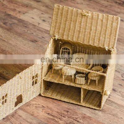 Product DescriptionNew Arrival Rattan Dollhouse for games Small house Playhouse Wicker High Quality for Kid Toy Wholesale SupplierThis adorable little playhouse will bring joy to your young child and inspire countless hours of creative play.Cabin dimensions: 11.81 inches (30cm) high;length 13.38 inches (34cm); width 9.05 inches (23cm).The cabin has three rooms, windows with shutters, a door that opens and closes, a roof that opens, and an entire front panel that opens. The house has a very comfortable handle so your little kids can carry it from room to room or collect their house and its contents to take to a restaurant or on a date.TypeStorage BasketsUseNeatening/StorageMaterialrattanFeatureSustainable, StockedFunctional designMultifunction, FlexibleDimensional tolerance<±1mmWeight tolerance<±1%(含)Related ProductRecommended By SellerMain MaterialPacking & DeliveryOur Selling PointsFAQCompany Profile