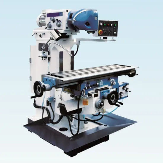The vertical spindle has two main components. The angel of two rotation axis is 45degree.We can adjust the milling head to any space angle by rotating two main components, processing more conveniently. Horizontal spindle adopts three-support structure, increasing spindle rigidity, and dynamic braking system with large torque quickly stop and reliability. Y.Z axes of worktable can be both manual and motorized feed, and rapid feeding with high efficiency. X axis travel is 1000mm, which expands the process range. X, Y,Z axes guidways adopt harden and grinding, high accuracy and long life. The transmission gear use several lubrication forms like centralized lubrication. oil-immersed lubrication, hand-operate lubrica.ation, oil cup fixed-point lubrication, which have goodeffect with low noise The structure has so good rigidity that it can bear heavy cutting work load, And it uses carbide cutting tools to make high speed cutting.