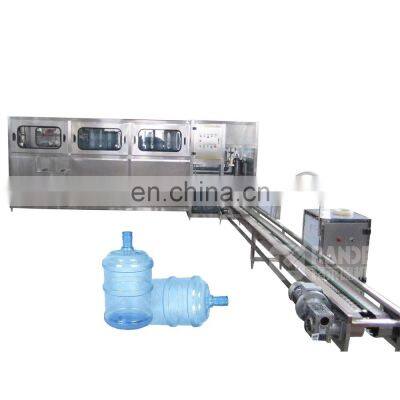 Automatic 5 gallon bottle with mouth water filling machine and bottling lineProduct DescriptionFunctions and features:This filling line specially for 3-5gallons barreled drink water,with type QGF-100,QGF-200,QGF-300,QGF-450,QGF-600,QGF-900,QGF-1200,It intergrates bottle washing,filling and capping into one unit ,In order to achieve the purpose of washing and sterilizing ,The washing machine use multi-washing liquid spray and-thimerosal spray,This thimerosal can be used circularly,The capping machine can cap barrel automatically ,this line equips with water spraying device in order to ensure those caps sterilizer and clean .it also can automatically carry out barrel ,washing,sterilizing ,filling ,capping ,counting and products discharging ,with complete function ,modern design and high degree of automation ,it is a new kind of barreeled water auto-production line ,which intergrates mechanism ,electricity and pneumatics technologies together . 1.Automatic break protection for power leakage and short circuit;2.Under-pressure protection: when incoming air's pressure is Less than or equal 0.5MPa, the equipment will be automatically stopped.3.Water-shortage protection: when the level of the water tank is lower than that of the liquid switch, the equipment will be automatically stopped.4.Remarks:We can add other functions as customer's requirements like:hot tank heating washing,bottle external washing,cap washing ,capacity note and man-machine control. Whole 5 gallon water filling line: DetailsAutomatic cap pulling out machine:Automatic cap pulling out machine is corollary production equipment specially designed for 5 gallons barrel drinking water filling and production line.It is compact, high working efficiency and stable and reliable, high degree of automation, it is the machine electrical Trinity corollary equipment for 5 gallon barrel automatic water production line.Automatic bottle inside and outside brushing machine:Automatic barrel external brushing machine is special use for 5 gallon barreled drink water production line. Especially for mineral drink water, can effective remove the deposit and alga materials bring by mineralize on the bottom of the barrel, this machine is under bottom of the barrel, both rinsing the inside and outside the barrel, obvious improve the rinsing efficiency, reduce the second pollution by second manual brushing and fall the labor intensity. Automatic bottle feed in:The empty barrel cleaned by inside and outside brushing machine sending through automatic loading system by transmission chain, loading barrel counter counting 2pcs barrels, blocking barrel cylinder action to stop feeding barrel, loading and pushing barrel action, and pushing barrel to barrel inverting frame reset, loading cylinder action to invert the barrel to level position and waiting for feeding barrel.Washing part:It has 2 rows and 9 steps washing Water consumption of filing water: 6T/H Consumption of water: consumption of water 1T/H(disinfection water reuse, water reuse one time)Filling part:Uploading and dropping barrels changed from 45 degree to translatory which is more stable.Nozzle can insert into 10-15cm of the barrel in order to rinse little impurities down. Rinsing pump is separately controlled by different magnetic valves. Pump only work when there is barrel on that. It can avoid the mixture of different cleaning fluid.Capping part:Liquid level difference is controlled in 1cm. Customers can choose to equip ABB/SEW motor, GRUNDFOS water pump, FESTO pneumatic component.Light checker and steam heating shrink machine:Inspection light is used for lighting when inspect whether exist sundries in barrel.Heat shrinking machine is consist of water vessel and electric heat up, electric heat up to produce steam.Automatic barrel bagging machine:Automatic film feeding, feed, bag, sealing once completed, save manpower, improve efficiency, and realize unmanned operation docking production line. Teflon anti-stick coating alloy thermostatic sealing knife, sealing temperature is extremely sensitive and accurate, it can be arbitrarily set, sealing wire is not easy to crack, no edges, sealing more beautiful.Leakage tester:leakage checking machine is a professional machine to check leakage, after gas filling, pressure keeping, pressure testing, the machine will push damaged barrels out of conveyor.Bottle conveyor system:Include empty feeding system, plastic chain full barrel conveyor system, SUS34 material Main technical parameterModelQGF-100QGF-200QGF-300QGF-450QGF-600QGF-900QGF-1200Filling heads12234612Volume3&5 GallonBarrel size Φ270*490mmCapacity(b/h)60-100100-240250-300400-450600-800800-9001000-1200Air pressure(MPa)0.4-0.60.4-0.60.4-0.60.4-0.60.60.60.6Air consumption(m³/min)0.370.370.60.811.51.8Motor power(kw)1.381.753.83.87.59.7513.5Rated power(kw)1.381.753.83.87.59.7513.5Rated voltage380V/ 50HZWeight(KG)68080015002100300035004500Related productSemi automatic 5 gallon / 20L PET bottle blow molding machine: Semi automatic Blowing Machine for 90BPH-180BPH from 5 gallon bottle with one cavity, 5L bottle with 2 cavity can be also used in this blowing machine RO System:Besides Water filling machine, this RO system is very important in the whole water project, we prefer you supply water analysis report from your local inspection department.This RO system we can make to match up with your waterfilling machine from capacity from 500L/Hr to 50000L/hr.We use GNP or CNP water pump, USA DOW or HYDRANAUTICS membrane, etc Automatic shrink labeling machine for 5 gallon neck label:Capacity: 50-100bottles/min can be chosenLabel material: PVC PET OPS, etcBottle material: PET PE PP GlassBottle Diameter: 28 ~ 120mmBottle Height: 15~320mmBottle shape: round, square, ellipse, rectangularLabel length: 30~250mm(max)Label thickness: 0.03~0.13mmCompany information Our teamFAQQ1: How to find suitable machine or complete beverage production line?A1: Looking for beverage filling machine in www.grandeemachine.en.china.cn •E