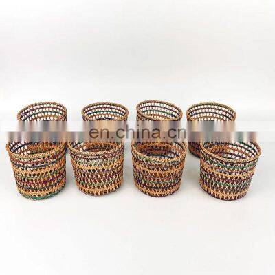 Handmade Rattan Set of Eight Colorful Small Wicker Cups Kid's toy , wicker Woven cup Holder Nursery decor Wholesale in Bulk