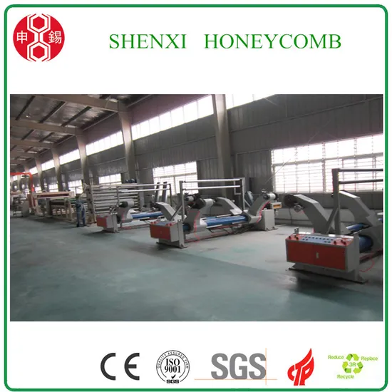 This machine is the newest type of honeycomb core making machine. It use 4-8 layers of medium paper to unwind, apply glue, heat, press and cut, to get the paper honeycomb in one stop.