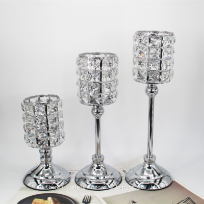 Wholesale Price Iron Crystal Candle Cup Silver Colored Party Wedding Decoration Table Centerpiece Candle Stand