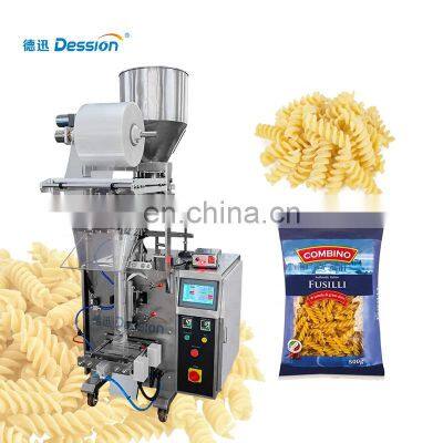 1g 2g 5g Sugar stick packing machine supplier , sugar packing machine 5gProduct DescriptionDession granule packing machine is suitable for loose rounded granules in the food, chemical and other industrial. Such as: puffed granules, peanuts, popcorn,melon seeds, rice, pepper, sugar,salt, biscuits etc.According to customer needs,the bag types can be changed:back seal, three sides seal, four side seal.1. The section where the material contact is stainless steel as the body of machine is optional for complete or partial stainless steel and all out equipments have passed the CE Standard.2. Optional English or other languages screen display, easy and simple operation. 3. High-sensitivity photoelectric color tracing and digital input of cutting position get more accuracy.4. Packaging speed and length of bags can be set to some extent without further adjustment and parts changing packaging speed and length of bags can be set to some extent without further adjustment and parts changing. 5. Bag-making, filling, sealing, cutting, counting can be achieved automatically and straightly. 6. Bag-making equipment can be changed according to specific requirement of customers and products.Model NO.DS-320AMeasuringMeasuring cupBag ShapeBack Sealing / 3 Sides Sealing / 4 Sides SealingPacking Speed30-80 bags/minRoll WidthMax.320mmBag Length30~180 mmBag Width15~100 mmMachine SizeL)1100*W)755*H)1540mmMachine Weight300kgPower220V,50/60HZ,1.2KVAEasy Control Touch ScreenLanguage: Standard English and Chinese. Any language can be customized.PLC: Imported PLC microcomputer with interface and frequency control enables bag parameter setting more convenient and easier. Film RollerThe film can be replaced easily on the film roller.Various films adaptable: OPP/CPP,OPP/CE,MST/PE/PET/PE.Measuring cup#304 stainless steel measurement parts will measure the weight of each bag automatically.Bag Former#304 stainless steel bag former is for shaping the film into a bag.Different bag width needs different bag former.Bag Cutting DeviceHigh speed of fine and clean cutting and sealing bags.Positioned stop function avoides sticking blades and wasting materials.According to customer needs,the bag types can be changed:back seal, three sides seal, four side seal.Depending on your needs, you can choose to replace or add the following configuration. For example, 3 sides sealing device, 4 sides sealing device, linking bag device, gas-filled device, easy tearing device and hole device.Related ProductsOur CompanyCertificationsPacking & DeliveryPayment1.T/T and Western Union are accepted2.30% deposit before production and 70% balance before shipment3.All banking charges outside China are on buyersShipping1.Upon receipt of payment , delivery date will be in 15-30 working days,2.By Air, by Sea or by Express (DHL etc)3.Shipment cost will depend on the destination, shipment way and the weight of the goodsFAQQ1:Do you have manual or operation video for us to know more about the machine? Yes, not only manual or operation video, 3D drawing also available to make as per your design,also the video we can make of testing the material from our packaging machine if your packing goods easier for us to find from our local market. Q2:How can I trust you for the first time business ?Please note our above business license and certificate. And if you don't trust us, then we can use Alibaba trade assuranceservice, guarantee your money, and guarantee your machine's on-time delivery and machine quality.Q3:Is engineer available to serve oversea?Yes, but the travel fee is paid by you. So actually to save your cost, we will send you a video of full details machine installation and assist you till the end.Q4:How can we make sure about the machine quality after we put the order?Before delivery, we will send you the pictures and videos for you to check the quality, and also you can arrange for quality checking by yourself or by your contacts in China.Q5:Will you provides the door to door service?Yes. Please offer us your final destination, we will check with our agent to see if it available, and most of the area is ok for us to clearing and sending in your countries.Our Service