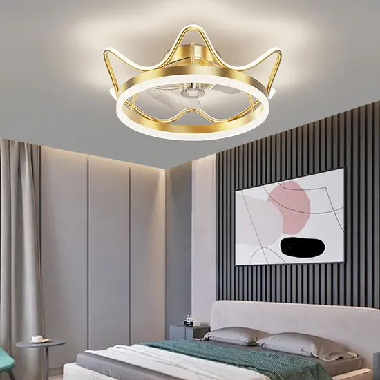 Product Description LED postmodern minimalist fan lamp mute bedroom ceiling lamp no stroboscopic round children's crown living room lamp
