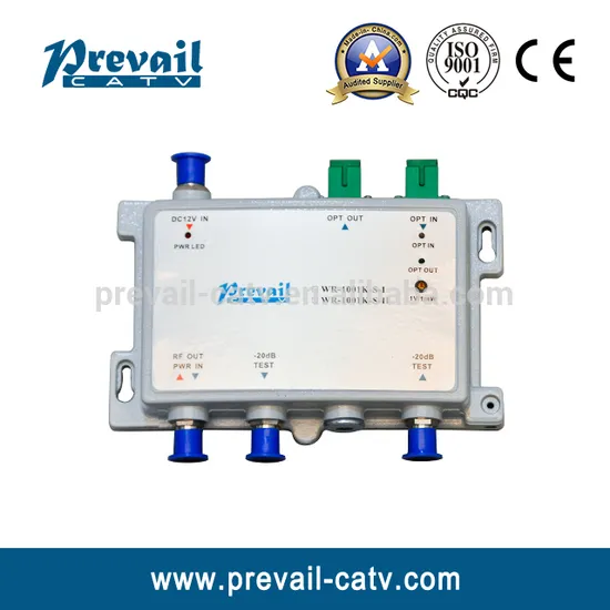 WR1001K optical receiver is the bidirectional equipment that is specially developed for HFC structure bidirectional metropolitan area broadband network. Rely on several years' research experience for CATV HFC fiber transmitting equipment. Take full account of the FTTH (Fiber to the Home) network topology, the engineering technology problem of CATV bidirectional return channel noise collection and the high reliability network security transmission requirements of modern CATV business. The return path adopts the burst mode (open the laser when have return signal), which greatly reduced the noise collection.