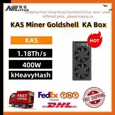 Model KA-BOX from Goldshell mining KHeavyHash algorithm with a maximum hashrate of 1.18Th/s for a power consumption of 400W.