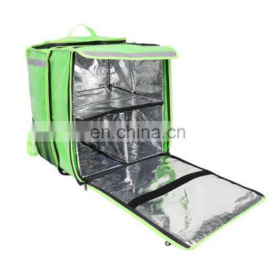 Product DescriptionProduct Model:ACD-B-025Size&Capacity:Outer size:44*44(24)*50cm Inner size:42*42(22)*48cm 96LMaterial:Outside 840D PVC+9mm insualtion foam+PVC zipper +Food grade hollow plateColor: Black ,red ,orange,blue,yellow, green or custom colorMOQ:300PCSCarton package size:41*49*66cm 5pcs/ctn 1.82kgDelivery date:30 days for mass productionLOGO:could be customerized if meet our MOQOEM/ODM:WelcomeOEM sample time:around 7-10 daysPayment:Trade Assurance/ 30% for order deposit, 70% blance before deliveryFeature:1.Backpack design.2.Large capacity.3. The thick 840D PVC +9mm insulation foam4.aluminum interior providing an extra layer of heat reflection, will not retain moisture or odors.5.This delivery bag is collapsible and easy to disassemble.6. Custom logo and colors.use way:On bicyle,on car,hand,liftCan be use as cooler bag or keep hot bag for pizza,cake,fast food delivery or keep fruit fresh and cans drinking cool.1. Shoulder Strap: With padding and is comfortable.2. Waist belt: Can carry better.3. Foam padding: feel more comfortable when carry.1. Plastic foot feet: To anti dirty & stand stable.2. D ring : Can use the elestic to help fixed on the bike/motorcycle.3. Belt and buckle system: Design for fixed on the bike/motorcycle.Company IntroductionFAQRelated Products