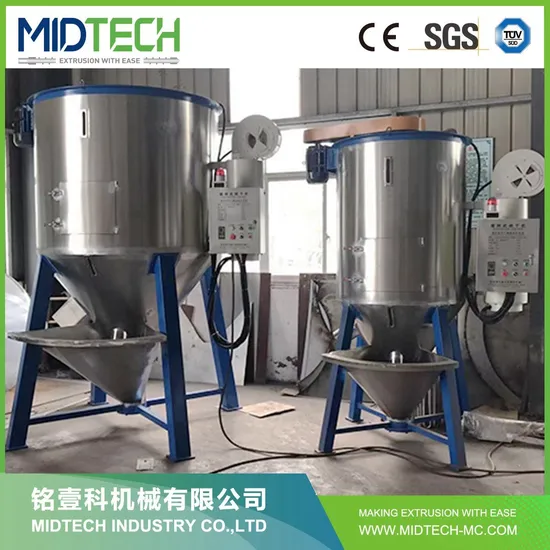 Helical Circular Plastic Pellet Mixer Machine Vertical Blender Plastic Mixer With Drying Product Description The plastic mixing silos is mainly used for the full mixing and drying process of PET,PP,PE,PVC and other plastic raw materials. The equipment are able to perform even mixture for large volume of materials in short mixing time by utilizing the paddles rotation to gatter the materials from the bottom of dump center to the top. Features: Helical circular mixture, fast and evenly stirring Suitable for all kinds of plastic raw materials and color master batch or granules. Customized for drying type model