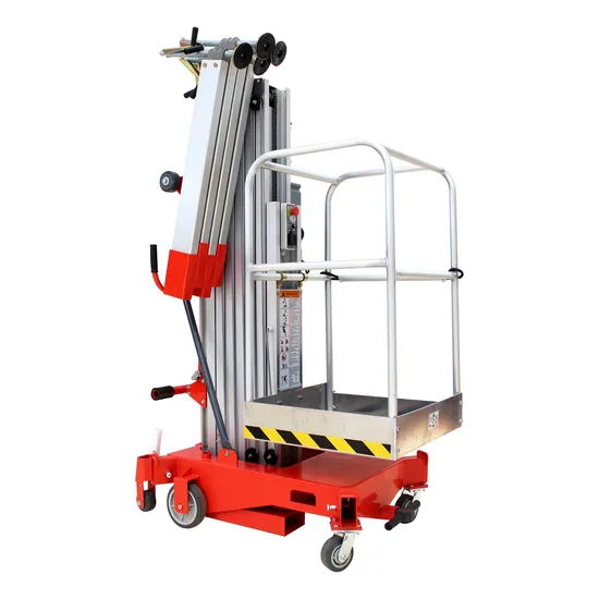 Single Aluminum Mast Lift Aerial Work Platform is a type of equipment that is commonly used in construction, maintenance, and repair work that involves heights. It is designed to provide a safe and efficient means of access to elevated areas, allowing workers to perform tasks such as painting, cleaning, and installing or repairing fixtures.