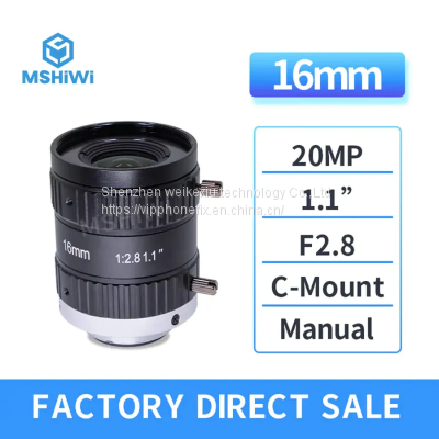 High-contrast Manual FA Lens 20MP C-mount 16mm Manual Focus Lens 1.1" F2.8 Aperture ITS Camera Lens, Machine Vision Lens for Robot Automation, Industrial Automation.