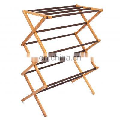 3 Tier Foldable Bamboo Wooden Clothes Drying Rack Water-Resistant