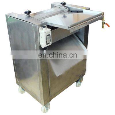 CE Approved 18m/min pork skin removing machine Introduction of CE approved 18m/min pork skin removing machine 1. This pork skin removing machine is of stainless steel, in line with food hygiene standards; 2.Adjustable tool holder,and facilitate the adjustment of the peeled thickness;3.Using the German blade,peeled and thickness of the freely adjustable,the machine attached to the moving wheels, easy to move; 4.precise structure of the machine runningsmooth, quiet low noise;foot plate safe operation switch, the operation is more secure. Feature of CE approved 18m/min pork skin removing machine 1.Whole machine adopts advanced stainless steel, in line with food hygiene standards; 2. Adjustable tool holder, convenient to adjust peeled thickness; 3.Germany blade, peeled thickness freely adjustable, machine attached to the moving wheels, easy to move; 4.Precise structure of the machine running smoothly, quiet, low noise; 5. Foot plate operating safety switch operation safer. Parameter of CE approved 18m/min pork skin removing machine ModelJXZP-435JXZP-500Peeling width435mm500mmAdjustable thickness0.5-6mm0.5-6mmCapacity 18m/min18m/mimSize 750*710*880mm830*1200*1600mmPower750w750wWeight 105kg200kg Pictures of CE approved 18m/min pork skin removing machine