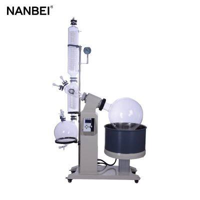 Rotary evaporator use stepless speed to make the glass rotating bottle constant rotation, the material in the bottle wall to form a large area of uniform film, and then through the intelligent constant temperature water bath heat the rotating bottle uniformly, high-speed evaporation under vacuum case, after the efficient glass condenser cooling, the solvent vapor will recycle in the collection bottle.