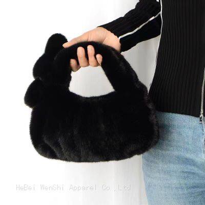36New winter plush cloud tote bag Autumn and winter bag female hand bag all hairy wrinkled tote underarm bag