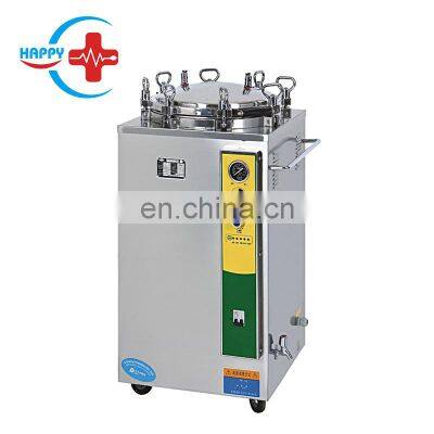 HC-O010 Factory Price Autoclave steam sterlizer 35-100L stainless steel hand round automatic vertical high pressure sterlizer Product Description Features for HC-O010 Factory Price Autoclave steam sterlizer 35-100L stainless steel hand round automatic vertical high pressure sterlizer: Valid volume35L(φ318*450mm) 50L(φ340*550mm) 75L(φ400*600mm)100l(φ440*650)Working pressure0.22Mpa 0.22mpa 0.22mpa 0.14mpaWorking temperature134℃ 134℃ 134℃ 126℃Max. working pressure0.23Mpa0.23Mpa0.23Mpa0.165MpaHeat average≤±1℃Timer0-60minAdjustment of temperature105-134℃ 105-134℃ 105-134℃ 105-126℃Power2.5kw/AC220V.50Hz 3kw/AC220V.50Hz 4.5kw/AC220V.50Hz 4.5kw/AC220.50hzTransport dimension570*550*1150(mm) 590*590*1280(mm) 650*630*1280(mm) 680*630*1370(mm)G/N.W72kg/56kg 88kg/68kg 100kg/80kg 110kg/85kg Pictures for HC-O010 Factory Price Autoclave steam sterlizer 35-100L stainless steel hand round automatic vertical high pressure sterlizer: Packaging & Shipping Company Information contact Our Services FAQ1. How to place order of HC-O010 Factory Price Autoclave steam sterlizer 35-100L stainless steel hand round automatic vertical high pressure sterlizer?A: Firstly we confirm product details and then send the Proforma Invoice, You make payment to us through Alibaba Trade Assurance or T/T, Western Union or MoneyGram, after we confirm your payment then ship the product to you once finished production. 2. For HC-O010 Factory Price Autoclave steam sterlizer 35-100L stainless steel hand round automatic vertical high pressure sterlizer product,What’s the minimum order quantity (MOQ)?A: For disposable material,We have our own MOQ,For our HC-O010 Factory Price Autoclave steam sterlizer 35-100L stainless steel hand round automatic vertical high pressure sterlizer , our MOQ:1pc, 3. What is your warranty?A: For most products the warranty is for 12 months, some products we provide 18 months warranty. For HC-O010 Factory Price Autoclave steam sterlizer 35-100L stainless steel hand round automatic vertical high pressure sterlizer , we provide 12 months warranty.4. What’s your delivery time?A: Generally it is 5 working days if goods in stock. within 10 working days if the goods need production, And also the delivery time depands on quantity. For HC-O010 Factory Price Autoclave steam sterlizer 35-100L stainless steel hand round automatic vertical high pressure sterlizer , the delivery time is 10 working days.5. How to ship the product?A: The shipping way normally depand on your quantity,total CBM and weight. We have our own shipping company to provide best shipping cost and efficient way.