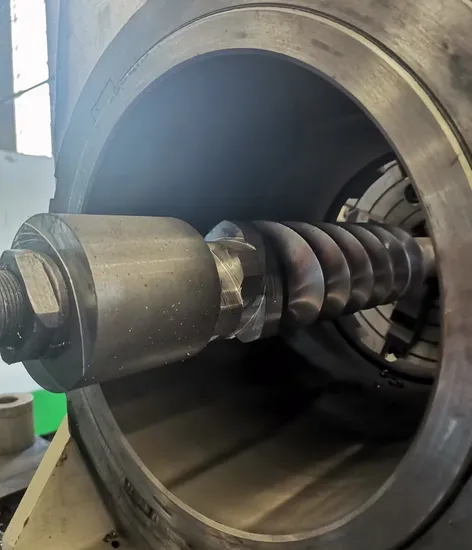 LX320×1500 CNC spiral rotor milling machine is designed and processed by our factory. This machine adopts molding milling cutter to milling screw and screw turning workpiece, mainly suitable for air compressor, refrigerator, industrial pump and other products, large size spiral rotor spiral surface processing.