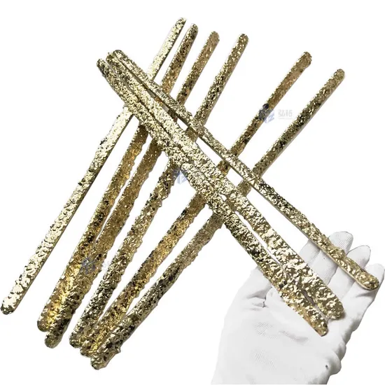 Feature of Tungsten Carbide Composite RodsSpecially selected Tungchip Tungsten Carbide Grit either "blocky" with sharp edges for cutting application or "rounded" Tungchip Tungsten Carbide Grit for wear applications are produced under stringent quality controls. Material is thoroughly cleaned to ensure the best possible wetting properties, both during manufacture and application. Stringent quality control procedures ensure repeatability of excellent quality, low fuming rod. The Tungchip Tungsten Carbide Grit is blended with a Copper, Nickel and Zinc alloy, to produce a premium quality Composite Rod. SIZES STOCKED