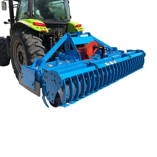 1BQ series Heavy duty power driven harrow can choose working width of 2-4.5M, and can be used with 80-300HP tractors. It has the advantages of good soil crushing effect, smooth ground after soil preparation, good moisture retention effect, no damage to soil structure and layering, and neat seedbed emergence rate. It is the first choice for farm managers.