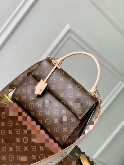 Designer replica of Brand L Old flower full print detachable shoulder strap coating canvas patchwork cowhide trim single shoulder crossbody handbag women's brown