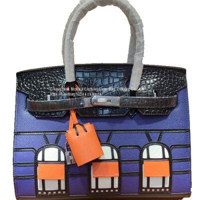 Europe And The United States New Small House Leather Platinum Bag Ladies First Layer Cowhide Handbag Crocodile Pattern Contrast Color Casual Bag