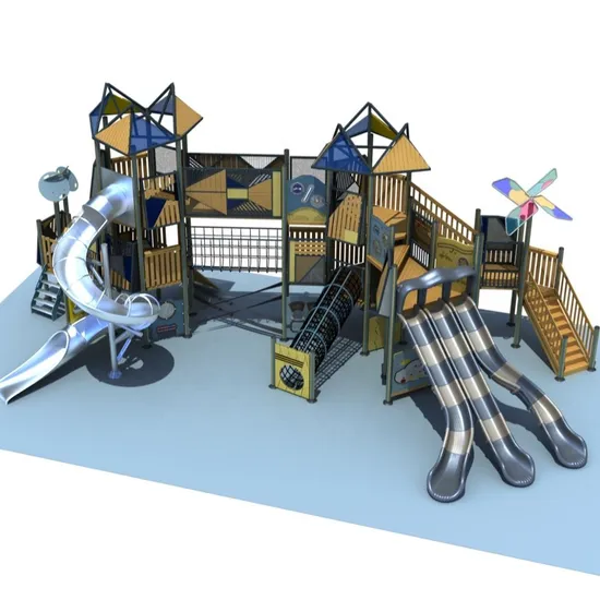 The main material of outdoor playground is galvanized pipe and plastic part, for the plastic part, we use imported LLDPE (Linear Low-Density Polyethylene) as raw material. It is Non-toxic, safe, and environment friendly.