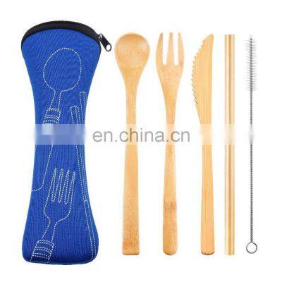 Wooden Flatware Cutlery Set Bamboo Straw Dinnerware Set With Cloth Bag Knives Fork Spoon Dishes Chopsticks Travel Tool Wholesale