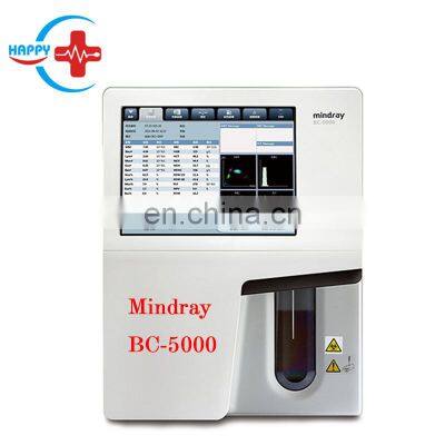 Mindray BC-5000 5-Diff Auto Hematology analyzer / 5-part blood cell counterProduct DescriptionFeatures for Mindray BC-5000 5-Diff Auto Hematology analyzer / 5-part blood cell counter: Based on Mindray’s continuous innovation in hematology field, BC-5000 is especially tailored to assist diagnostic labs whoneed full CBC + 5-part results, with relatively low daily sample volume, restricted lab space and tight budget.As the lightest and most compact 5-part hematology analyzer so far from Mindray, BC-5000 is a highly user-friendly andinnovative analyzer that offers cost efficient CBC and 5-part white cell differential results. It is targeted to fulfill and exceedthe demands of our global customers by providing more accurate, more efficient and more innovative solutions for labs. Features:· WBC 5-part differentiation, 23 reportable parameters, 3 histograms and 3 scattergrams· Whole blood mode, Capillary whole blood mode and Prediluted mode· Powerful capability of flagging abnormal cells· 10.4 inch large TFT touch screen with user-friendly software· Large storage capacity: up to 20,000 samples· Throughput: 40 samples per hour· Tri-angle Laser scatter + Chemical dye + Flow cytometry technology· Dedicated optical counting channel for Basophil measurement · Sample volume is only 15μL which is ideal for pediatricsTri-angle laser scatter + focused flow + chemical dye, creating the possibility for a better 5-part WBC differentiationeven on samples with high Eosinophil. Pictures for Mindray BC-5000 5-Diff Auto Hematology analyzer / 5-part blood cell counter: Packaging & Shipping Company Information Our Services Contact FAQ1. How to place order of Mindray BC-5000 5-Diff Auto Hematology analyzer / 5-part blood cell counter?A: Firstly we confirm product details and then send the Proforma Invoice, You make payment to us through Trade Assurance or T/T, Western Union or MoneyGram, after we confirm your payment then ship the product to you once finished production. 2. For Mindray BC-5000 5-Diff Auto Hematology analyzer / 5-part blood cell counter product, What’s the minimum order quantity (MOQ)?A: For disposable material,We have our own MOQ,For our Mindray BC-5000 5-Diff Auto Hematology analyzer / 5-part blood cell counter, our MOQ:1pc, 3. What is your warranty?A: For most products the warranty is for 12 months, some products we provide 18 months warranty. For Mindray BC-5000 5-Diff Auto Hematology analyzer / 5-part blood cell counter, we provide 12 months warranty.4. What’s your delivery time?A: Generally it is 5 working days if goods in stock. within 10 working days if the goods need production, And also the delivery time depands on quantity. For Mindray BC-5000 5-Diff Auto Hematology analyzer / 5-part blood cell counter, the delivery time is 10 working days .5. How to ship the product?A: The shipping way normally depand on your quantity,total CBM and weight. We have our own shipping company to provide best shipping cost and efficient way.