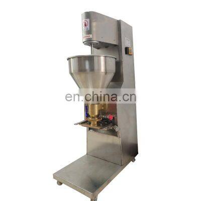 Automatic meatball making machine Function of automatic meatball making machine1). Meatball forming machine is used in chicken balls, fish balls, shrimp balls, beef balls, mutton balls, vegetable balls etc. 2).The major equipment of themeat ball product line include the meat grinder , meat chopper , stuff mixer , ball forming machine , molding sink , deeply production equipment etc . 3).The finished ball’s size can be changed as the different models. Specifications of automatic meatball making machine ModelYR-BX200Dimensions700x800x1750mmPower Supply380V/50hzPower1.5kwWeightabout 250kgOutput200 grains/minute Pictures of automatic meatball making machine 1. The body is made of 304 stainless steel, which meets the sanitary standard and is easy to clean.2. Some parts are machined by the wire cutting of CNC lathe,with high precision, the stroke and transmission are stable.3. The working device and the consumable parts are standard casting alloy parts, the specifications are unified when processing, easy to replace and maintain later.4. It has been improved by repeated tests in production and use, using skin material and filling material separately for feeding the foodstuffs and adopting the positioned shear device.5. Simple operation, easy regulation, medium meat filling, low broken filling.6. Strong handling, high stability, stable production rate; it can be used to increase the filling of the skin, so that the skin is thin and stuffed.7. It can produce a variety of spherical sauce soup stuffing products, such as wrapped fish-ball, wrapped Pork-ball, wrapped Beef-ball and so on.