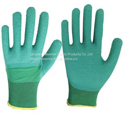 13Gauge Polyester Liner Wave Crinkle Latex Half Coated Gloves Latex 3/4 Coated Working Gloves Rubber Coated Gloves