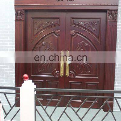 Antique design wooden double door solid wood for commercial entrance & house gate Features:- 100% wooden & manufactured by hand. - Luxury carved design. - Double panel or 4 panel. - waterproof, moistureproof & insect-prevention. SPECIFICATIONMaterial100% Solid wood Solid Wood TypeWhite Oak, Walnut, Mahognay Teak, Cherry, Sapele, Ash, Red Oak, Palisander, Merbau ect.Door sash & Door frame thicknessstandard 40mm.45mm & 50mm thick is optional.Swining direction Swing inward or outward.ArchitraveBoth interior & exterior with architrave. Size for architrave: 60mm & 70mm & 80mm. Design of achitrave: Various pattern. FinishingFull polished & 4 times painting processing. HardwareHandle & keyed lock & hinges are available. After sale service Lock hole openning service can be provided. Door application Home interior & exterior, hotel entry & room, restaurant & office ect. commercial area.Door design to our design. Or custom make to any design client provided.Weight of our door 45-60kg per setFeature Full solidity, security, soundproof & waterproof & moistureproof. Our Door Structure: Our Solid Wood Choices: Our paint color selections: Doors Details: Our Doors production & Factory: MORE DOUBLE DOOR DESIGN: WHY CHOOSE US ?1. High experienced productivity. Our factory has 10 years poduction experience on the solid wooden door, and MDF & HDF engineered doors. Our production line & quality management has been much mature.2. Punctual delivery garanteed. Our solid wood raw matrial supply chain is garanteed thus the delivery time for you is secured. We work with the importing group company for various solid wood importing.3. Most competitive price. Since our secured material supply & mature productivity, eventually we can offer you with the best costings based on our reliable quality.4. Tightly follow up service. After your order placed, any steps that your orders are moving on, we can feedback with you time effciently.5. Well package & shippment safety garanteed. Our goods are packed with the thick foam & bubble fime & export carton.