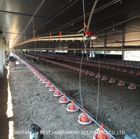 Our poultry farm equipment including:Automatic main feed line system,Automatic pan feeding system,Nipple drinking system,Environment control system,Ventilation system,Cooling pad system,Fogging system,Heating system and Curtain system.