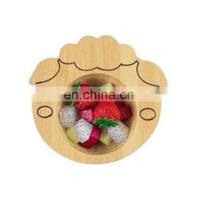Eco-friendly Wood Bamboo Baby Bowl Plate Custom Stay Put Suction Baby Feeding Bowl With Suction Base