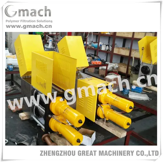 Large capacity double piston continuous screen changer for plasticextrusion machine