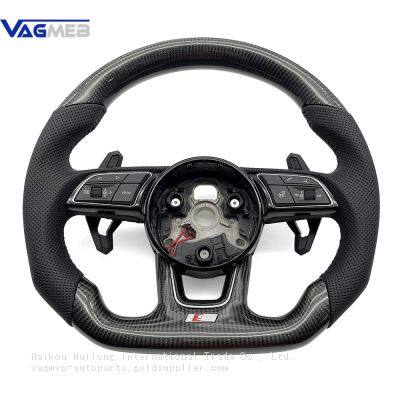 For Audi A4 B9 Heated Carbon Fiber Perforated Black Stitching Steering Wheel With S /RS Logo Accessories