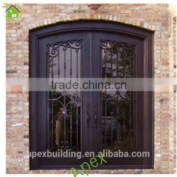 Wrought iron entrance door french doorIntroduction:ItemWrought iron entrance door exterior door french doorMaterialForge ironStyleDouble/eyebrowSize6*8ft/customizedOpeningSwing in or swing out both are okAnti-rust treatmentsand blast, hot zinc spray, epoxy primer(twice), acrylic acid black paint, hand applied faux finish, varnish coatThresholdIntergrated threshold with door jamb to ensure the strongness of the iron doorWeather strippingRubber weather stripping seals around jamb, door panel and glass panelPolyurethane foamJamb, panel, threshold and kickplate are fully injected with polyurethane foam Colors available Production process Packing Features:1.Strong structure, the size of tubing and flower parts can be collocated as customer’s requirement. 2.Have the excellent climate resistance. 3.Erosion resistance and temperature change resistance. 4.Tough paint coating, powerful adhesive ability. 5.The ornamental wrought iron component is totally produced by ourselves, so we have unusual speedily application property and selectivity. There are various arts flower parts to choose.They can be collocated optionally to ensure variouseness of our products and the constructions is flexible and convenient. Order steps:1).Release production order with customer-approved CAD drawings 2).Orders are Scheduled;3).Get Ready of All Materials;4).Weld and Assemble the doors;5).Polishing;6).Sand Blasting7).7-steps finishing8). Final Inspection one of the projects case: Project case show Back to home