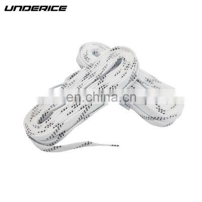 Product DescriptionProduct NameHockey skate lacesMaterialPolyester fiber, cottonAvailable colorBlack, white, red, blue, pink, yellow, greenWidth1cm or 1.2cmLength72'', 86'', 96'',108'',114'',120'', 130''LogoCustomized LogoPackageeach pair with or without paper package, customized printing for MOQ 500pairs. 360-450 pairs per carton box, box size: 42*42*43cmDetailed ImagesMain FeatureAn important advantage of impregnated laces is the high reliability of fixation. Today, skates have hard composite boots, whichare hard to hold tight. Impregnated laces are best suited for this. They practically guarantee that the initial lacing does notweaken during the workout and you do not need to tighten it. To ensure such high performance, it is important to thoroughlyimpregnate the lace fiber with wax. To do this, it is first dipped with melted paraffin, and then heated, so that it is better toimpregnate the wicker structure and remove excess impregnation. As a result, the lace has sufficient tenacity, but does not feelsticky and greasy: it is dry to the touch.Paraffin impregnation protects the cord from getting wet and gives them greater durability. If on ordinary shoelaces withinveterate constancy you can detect cuts, then the option with impregnation is more resistant to such influences. As a result,they not only better tighten the skate shoe, but also more durable, which leads to savings.Packing&ShippingRelated ProductsFAQQuestion 1. What is the minimum order quantity for custom my own brand on package?Answer: 1000 pairs. 200 pairs a color.Question 2. Can I get sample?Answer: YES, we can send sample for free, you just need to pay the shipping.Question 3. How much to set up my own design on sample?Answer: YES, the unit price for sample stick with customized design is $50-$100. Question 4. What other hockey products you have?Answer: We are one-stop hockey products supplier, we produce ice hockey stick, offer gloves, bags, training products, puck, tape, water bottle...Question 5. What payment term do you accept?Answer: We accept various ways of payment method, such as T/T, Money Gram, west union, paypal and alipay, etc.30%/50% deposit before production, and 70%//50% remaining before shipping, flexible terms according to your detailed demands.