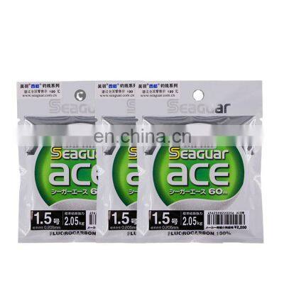 SEAGUAR ACE 60m fluorocarbon fishing line monofilament Amazon hot sales wholesales fishing lineProduct DescriptionProduct nameSEAGUAR ACE 60m fluorocarbon fishing lineMaterialFluorocarbon linecolouras photoProduct information 1.2#/1.65kg/0.185mm10#/10.4kg/0.520mm 14#/14.6kg/0.62mm16#/16.3kg/0.660mm20#/19.8kg/0.74mm7.0#/7.4kg/0.435mm8.0#/8.5kg/0.470mm1.2#/1.80kg/0.185mm2.5#/3.15kg/0.260mm3.0#/3.95kg/0.285mm3.5#/4.4kg/0.310mm4.0#/4.9kg/0.330mm5.0#/5.9kg/0.370mm1.5#/2.05kg/0.205mm1.75#/2.35kg/0.220mm2#/2.60kg/0.235mmIf you think the product price is too high, please contact us.If you think the shipping cost is too high, please contact us.Customer PhotosAbout UsExhibitionOur AdvantagePackage & ShippingFAQ