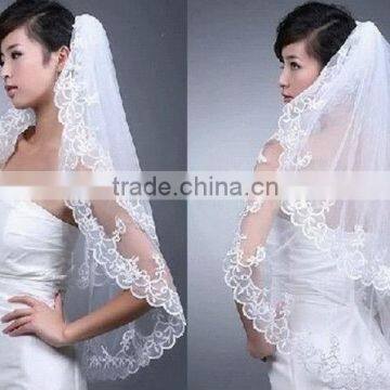 White Cathedral Wedding Bridal Applique Voile Edge wedding Veil with comb