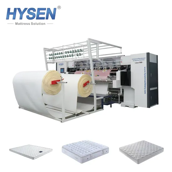 HSW3200 Computerized High Speed Shuttleless Multi-Needle Quilting Machine,The needle row adopts a needle bar frame structure, which eliminates the need for oil and avoids oil stains on the fabric. Moreover, this structure is stronger and not easy to be damaged, and the maintenance cost is low. Advanced surface thread breakage detection technology and automatic shutdown function when thread breakage occurs. The CAD drawing method is accurate in graphics, convenient and fast. High rigidity body, high machine operation, light vibration, low noise and no impact, regular refueling function. A new hooking button is added. Press this button and the machine will automatically stop at the hooking position to facilitate customers to install and debug the hook. A new high-position button is added. Press this button and the needle position will automatically stop at the highest position to facilitate needle threading.