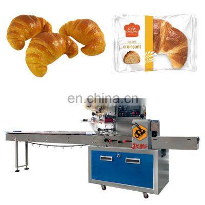 High speed automatic bakery bread flow packing machine for communion packaging machine croissant bread packing machineProducts DescriptionThe JK-B model flow packing machine features quick, easy changeover and adjustment that minimizes product and film waste and reduces maintenance costs.The machine working starts with a cylindrical roll of film. The flow wrapping machine will transfer the film from the roll and through to the forming collar (sometimes referred to as tube or plow). At the same time, a conveyor has lined up individual products for wrapping. The film is fed through the collar and the product is surrounded with film, sealed and the film is then cut. The finished individual product is then gathered downstream to be bagged or cartoned prior to boxing and palletizing.Automatic flow packing machine is a widely used packing machine. Suitable for all kinds of product packaging. Including medical supplies, vegetables and meat, baked bread, snacks and candy, daily necessities, hardware accessories, etc.Main Features1.Dual frequency conversion control, Bag length can be set and cut in one step, saving time and film.2.Interface features easy and quick setting and operation.3.Self failure diagnosis, clear failure display.4.High sensitivity photoelectric eye color tracing, numerical input of cutting sealing position for extra accuracy.5.Temperature independent PID control, more suitable for packaging different materials.6.Positioned stop function, without sticking knife or wasting film.7.Simple driving system, reliable working, convenient maintenance.8.All control is realized through software, easy for function adjusting and technical upgrade.Machine Working Process1st step: Put the packaging film on the holder and wear the film as required.2nd step: Setting the parameters you want by touch screen.3rd step:Put the materials to be packed on the conveyor belt4th step: The bag former will make the bag automatically.5th step: The horizontal and vertical cutter device will seal the middleand of the bag.6th step: You will get the nicely paper or plastic bag type.Why Choose UsJIKE BEE MACHINERY has a professional team to provide customers with various packaging solutions. Fully understanding the needs of customers,engineers design the most suitable solution. We have our own processing and assembly workshop and quality inspection and debugging process to ensure the quality of the machine. After acceptance by the customer, they are packed in international standard wooden cases and shipped.We will package the machine's instruction manual and a USB flash drive with machine operation videos together with the machine.Ensure that you can use the machine as soon as you receive it. If you have something you don't understand, our after-sales team will also help you answer in time.Our customers have covered more than 80 countries around the world.And give us unanimous praise.Company ProfileFoshan Jike Bee Automation Equipment Co., Ltd. is a manufacturer of automatic packaging equipment.We are a production-oriented enterprises focused on product innovation, factory direct sales and perfect after-sales service in one.The automatic packaging equipment for granule, powder, liquid and sauce produced by the JKMF company is at the advanced level of the industry,it can be customized production automatic material packaging line for all kinds of products .Mainly applicable to: food, hardware, drugs, daily chemicals, pesticides, fruits and vegetables, cosmetics, other industries.The company has its own patent and product technical certification, which can bring customers high quality equipment and worthy of customer trust.CertificationsFAQQ1:Do you have manual or operation video for us to know more about the machine? Yes, not only manual or operation video, 3D drawing also available to make as per your design,also the video we can make of testing the material from our packaging machine if your packing goods easier for us to find from our local market. Q2:How can I trust you for the first time business ?Please note our above business license and certificate. And if you don't trust us, then we can use Alibaba trade assurance service, guarantee your money, and guarantee your machine's on-time delivery and machine quality.Q3:Is engineer available to serve oversea?Yes, but the travel fee is paid by you. So actually to save your cost, we will send you a video of full details machine installation and assist you till the end.Q4:How can we make sure about the machine quality after we put the order?Before delivery, we will send you the pictures and videos for you to check the quality, and also you can arrange for quality checking by yourself or by your contacts in China.Q5:Will you provides the door to door service?Yes. Please offer us your final destination, we will check with our agent to see if it available, and most of the area is ok for us to clearing and sending in your countries.