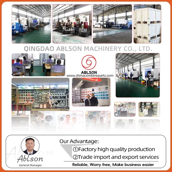 | Qingdao Ablson Machinery Co., Ltd is professional in agricultural machinery parts. In 2004,We started on agricultural machinery parts, and supplied the high quality punched parts, machined parts, casting parts and forged parts to our loyal customers. Since 2005, we have begun exporting the combine harvester spare parts, cultivator parts and loader tines in big quantity. Now we have enough experience on exporting agricultural machinery parts, exactly in the combine harvester spare parts, cultivator parts and hay loader parts, we sincerely look forward to cooperate with you, also your persistent support and belief is invaluable wealth for us. |