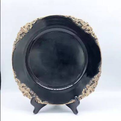 Dinner Golden plastic charger plates wholesale black gold wedding Charger Plates Reusable Plate Gold Antique