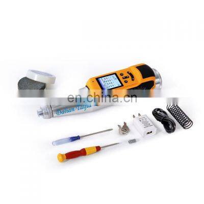Product DescriptionTEM912 digital rebound tester, digital part adopts modular design and non-contact grating optocoupler sensor collection, with automatic recording, automatic storage, automatic calculation, automatic data processing; and voice broadcast; later data analysis and processing, according to the specifications automatically Data analysis, test report. It improves the work efficiency of rebound testing, reduces the labor intensity of testing personnel, embodies the scientificity, advancedness, fairness and accuracy of rebound testing, and leads non-destructive testing to a new stage of digitization and intelligence.1) Automatically display and record the rebound value, and calculate the converted strength value of each measurement area and the estimated strength of the component according to the relevant testing specifications; 2) 2.0-inch color LCD screen (220×176 pixels), the detection data can be clearly seen in any situation;3) The color digital module and mechanical rebound meter can be disassembled at will;4)Silicone button design, flexible use; ergonomic design, comfortable and warm heart; streamlined and elegant design, smile look and feel;5) Support display in English;6) Multiple data transmission modes, easy to operate, accurate and convenient;7) The carbonization value of the measurement area can be input 3 times, and the average value is automatically calculated;8) Selective transmission, printing, exporting and deleting functions of test components, easy to operate;9) Built-in steel anvil rate setting function, record rate setting information; support check function of rebound times;10) Support the internal program update function of the instrument to facilitate the upgrade of new functions;11) Noisy situation on site, you can use a universal headset, plug into the dedicated port of the headset, to avoid outside interference;12) Equipped with business diagonal leather bag, easy to carry, easy to operate, easy to use, and durable and wear-resistant;13) Any on-site operator of this product can freely disassemble and replace the rebound hammer without training.SpecificationitemTEM-912 Digital concrete test hammerPlace of OriginChinaBrand NameTmeasurementModel NumberTEM-912Standard impact energy2.207JRigidity of tension spring785.0±40.0(N/m)Pointer length20.0±0.2(mm)Pointer friction0.65±0.15(N)Working length of bounce tension spring61.5.0±0.3(mm) Power supply 3.7V Lithium battery, 1050 mA Port USB (update type and WIFI. ) Collection Mode Automatic display and record data Size(mm) 150×62×39 Weight(kg) 0.1kg(include battery) Color Yellow Rebound Hammer type Digital concrete test hammerCompany ProfileDalian Taijia Technology Co.,Ltd is a high technology company which specializes in supplying and supporting of ultrasonic measurement equipment. prime products include ultrasonic transit-time flow meter, ultrasonic level meter, ultrasonic thickness meter etc. Our products are widely used in water supply and drainage water, petroleum and chemicals, food and pharmaceutical.We have sold product in more than 30 countries, such as America. Italy. India. Korea. Germany. Canada. Australia etc.We thank you for visiting our Web Site and look forward to the opportunity of being of service to you.Related productsContact Us1. 18 Month's Warranty.2. Delivery time:3-7 working days after payments received3. MOQ:1 set.4. Service express company:TNT/DHL/FedEX.5. We accept T/T, Western Union, PayPal & Secure Payment.Address:NO.5 Shanshui Yuan, High-tech Industrial Zone Dalian, China 116033E-mail:commercial@tmeasurement.comTEL:86-411-39685079Whatsapp:+8618842866177web:/