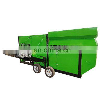 Mobile Trommel Screen Waste Rotary Drum Screen For Sand WashingWast Trommel ScreenThe mobile trommel screening machine is a screening equipment developed by our company for small and medium-sized and light materials such as compost, wood chips, cow dung, sand and gravel.It has the following characteristics:1. Smooth operation and low noise;2. Simple structure, maintenance Convenient;3. The screen holes are not easy to block;4. The screening efficiency is high;5. The screen has a long service life and is easy to replace.Structure and PrincipleThe mobile trommel screen is mainly composed of silo, screen drum, idler assembly, transmission part, discharge conveyor, brush, underframe, rear axle, traction, diesel generator, control cabinet, protective cover and other parts.The basic working principle of the trommel screen: the material is poured into the silo by the loader, and transported to the trommel screen by the conveyor on the silo, and then the motor reducer drives the idler to rotate the screen cylinder, and the material particles in the screen cylinder follow the screen. The drum rotates to a certain height, is thrown and dropped by gravity, and is filtered through the screen to form a screening. Finally, the screened materials are transported to different places by different conveyors.Product NameMobile Trommel ScreenProduct TypeMTS0818MTS1022MTS1230MTS1550Trommel Diameter0.8m1m1.2m1.5mTrommel Length1.8m2.2m3m5mTrommel Power2.2kw2.2kw4kw5.5kw*2