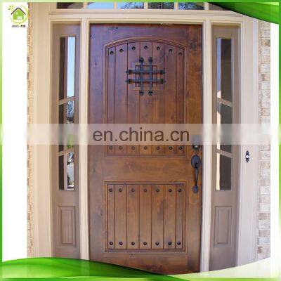 Product DescriptionAdvantage of exterior commercial solid wood glass french front doors for homes1.more than 10 years production experinece2.high quality with competitive price3. punctual delivery4. with noble and luxurious design and can also be customized5. sound proof and heat insulated, mothproof and shock proof, environmentally freindly6. suitable for mass production7. perfect after-sale service Material1. 100% solid wood 2. Glass door panel: 10mm -12mm tempered glass.ood core + Wood Veneer Finishingoil paintting:2 times primer + 3 times color suface paintColorDifferent color available; Free customizedDesignFree customized; OEM acceptable.ArchitraveTwo face both interior and exterior with architrave.Glass Art glass /clear glass /frosted glass etc.Openning DirectionInward or Outward.AccessoriesS304/S316 stainless steel material locks and hinges.Our wood door features10 years at least wood door production experience; 100% handmaking craft; Deep carved design; Wood pre-treated; Mositure proof & Waterproof; non-cracking & weather resistance; Solidity & Security Detailed Images Our wood door structure: Natural Wood Veneer - cut from exotic wood species provides a unique color, individuality, expressivetextures, durability, resistance to damage and decay, firmness, reliability, flexibility and density of thewood from which it is made. Other Designs are available: Company Information Our Factory Customized option Production Process Packaging Product Advantage