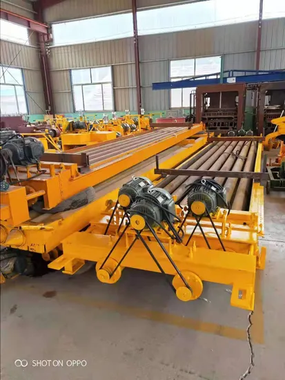 The machine works on the concrete platform, using pre-stressed steel wires as guidance, electric motor as power to push the concrete into concrete slabs while walking along the steel wires. The continuously working of vibration plate will highly classify the concrete. Meanwhile, the reaction of pushing materials by slider will move the equipment go along with the steel wire overcoming the frictional resistance. After nearly 48-hour maintenance, it can be cut into concrete slabs for use.