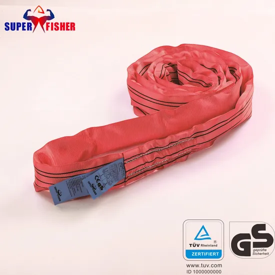 Product Description 100% Polyester Endless Round Sling EN 1492-2:2000+A1:2008 Safety Factor:7:1 Capacity:1Ton - 500Ton Length:Customized Service Round slings are manufactured tu EV1492-2 and have a safety factor of 7:1. The load bearing fibers are wound together to form an endless hank. The working load limit id determined by the number of turns in the hank. Round Sling are manufactured on a round sling machine. Slings made on this machine are more compact as the winding of the yarn is uniform and the tension on each yarn is constant. Advantage over Round Slings Round Slings have a high strength to weight ratio. Wears evenly along the length. Load bearing fiber protected from the load, giving greater resistance to wear. Remove slings from service when the outer cover is damaged and/or the yarn is exposed. Detailed Photos SUPER FISHER Round slings are manufactured to EN1492-2 and have a safety factor of 7:1. *The load bearing fibers are wound together to form an endless hank. *The working load limit is determined by the number of turns in the hank. *Round Sling are manufactured on a round sling machine,slings made on this machine are more compact as the winding of the yarn is uniform and the tension on each yarn is constant. *Round Slings have a high strength to weight ratio. *Wears evenly along the length. *Load bearing fiber protected from the load, giving greater resistance to wear. *Remove slings from service when the outer cover is damaged and/or the yarn is exposed.