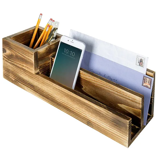 | Product name | Aveco multi purpose 15 inch long rustic solid wood desktop storage with pen holder and postcard holder |