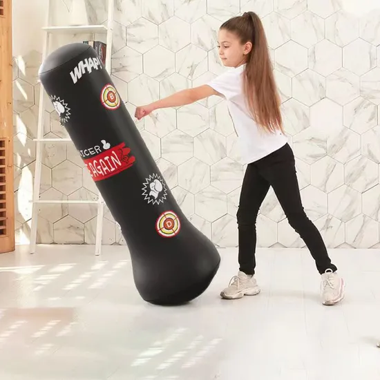 Material: PVC Design: stylish design, High Quality: Heavy-duty construction provides years of reliable use; strong and durable, safe and reliable, long service life. Feature: Inflatble, boxing arm and leg training Colors : optional colors, sky blue Weight: 700g OEM: Available of light custom design such as packaging, colors and logo on product Detailed Photos